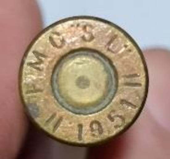 Efectivamente es un 30 06 fabricado en San Lorenzo, tenia una caja de esos, creo que me quedan 8 o 9.  Cuando llegaron los barcos y los Sherman a la Argentina, despues de la guerra venian con  Garands y ametralladoras de apoyo en ese calibre y las fabricas militares fabricaron esa municion. No habia problema de confundirlas con las de mauser y luegocon las de FAL porque eran mas largas y no entraban en las recamaras.  Esa es la realidad de estas municiones.