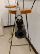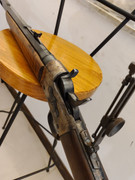 Con caño de  70 cm de largo de avancarga, recamarado a 45 70. Noten que tiene un inserto porque no daba el diametro para hacerle la rosca al caño